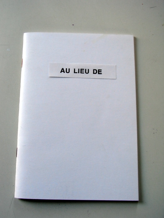 "Lire au lieu d'écrire", Antoine Moreau, janvier 2009, d'après "AU LIEU DE" de Jean-Marie Krauth, une proposition pour Tool Box, 2008, actualisation du tampon-caoutchouc de 1994.