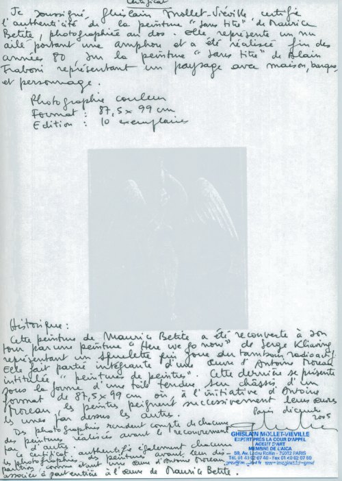 certificat d'authenticité Maurice Betite
