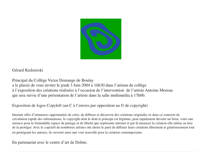 La mention copyleft a été scrupuleusement observée et affichée en cartel lors de l'exposition. Mais, il n'a pas toujours été possible, après coup, de bien reconnaître pour tous les élèves, leurs créations respectives.