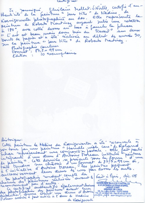 certificat d'authenticité Nadine de Koenigswarter