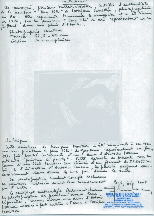 certificat d'authenticité Monique Morillon