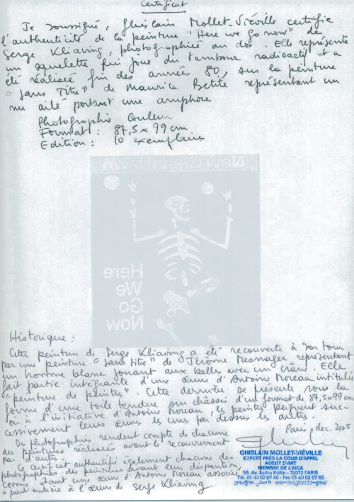certificat d'authenticité Serge Kliaving