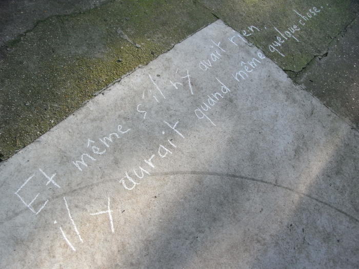 "Et même s'il n'y avait rien, il y aurait quand même quelque chose.", Antoine Moreau, janvier 2009, d'après Eric Watier, "Travaux discrets", 1981/2008 etc., celui-ci :