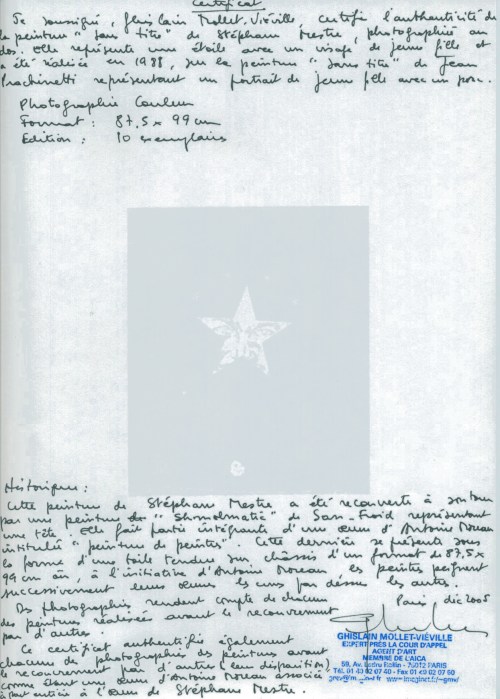 certificat d'authenticité Stéphane Mestre