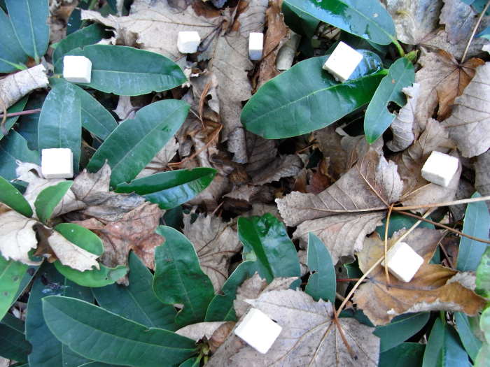 Dans un buisson ou un bosquet, disposer 8 morceaux de sucre afin qu'ils forment un cercle du point de vue de l'installateur.
