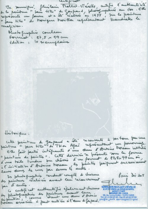 certificat d'authenticité Gaspard