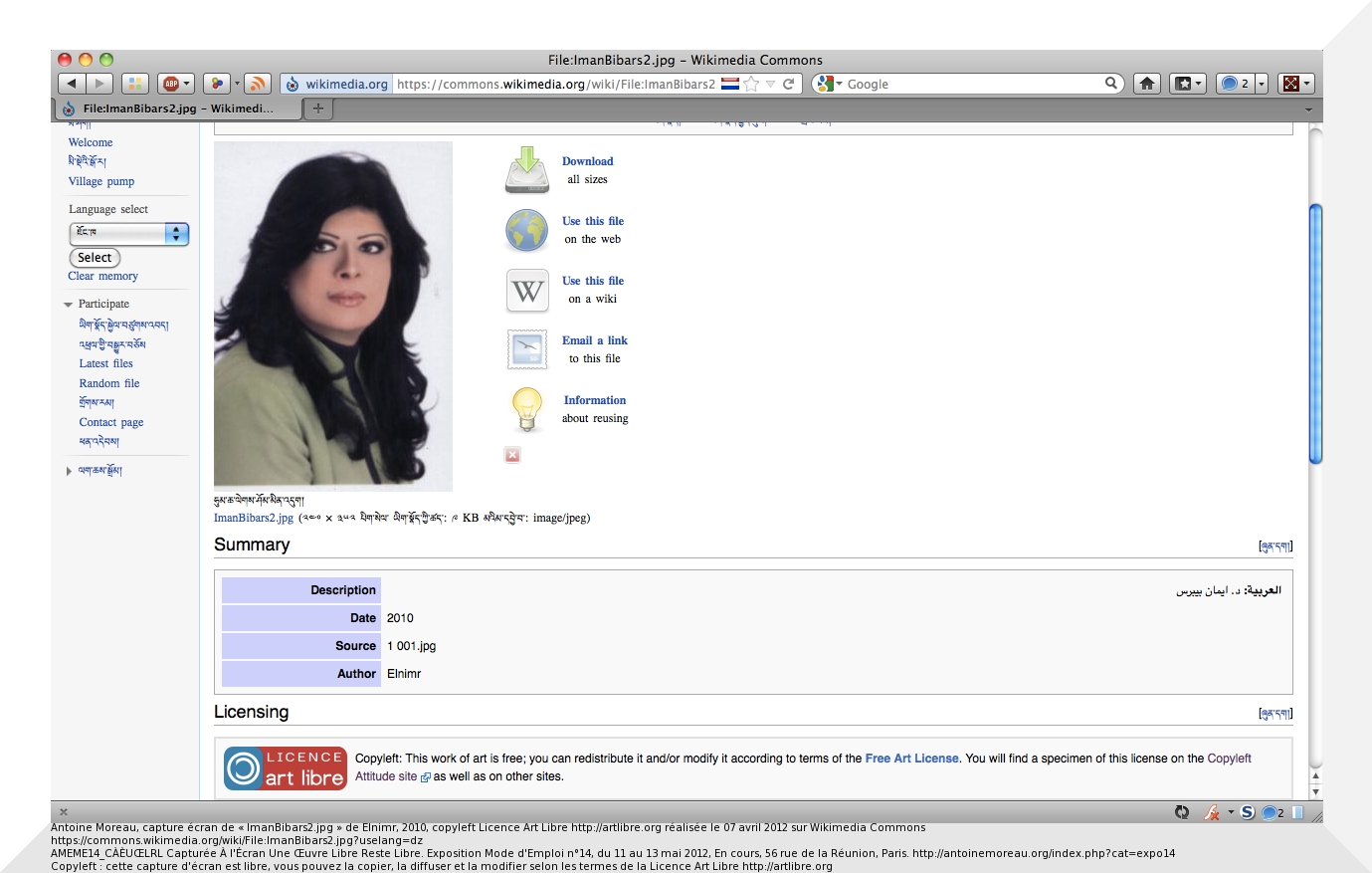 Antoine Moreau, capture écran de « ImanBibars2.jpg » de Elnimr, 2010, copyleft Licence Art Libre http://artlibre.org réalisée le 07 avril 2012 sur Wikimedia Commons https://commons.wikimedia.org/wiki/File:ImanBibars2.jpg?uselang=dz