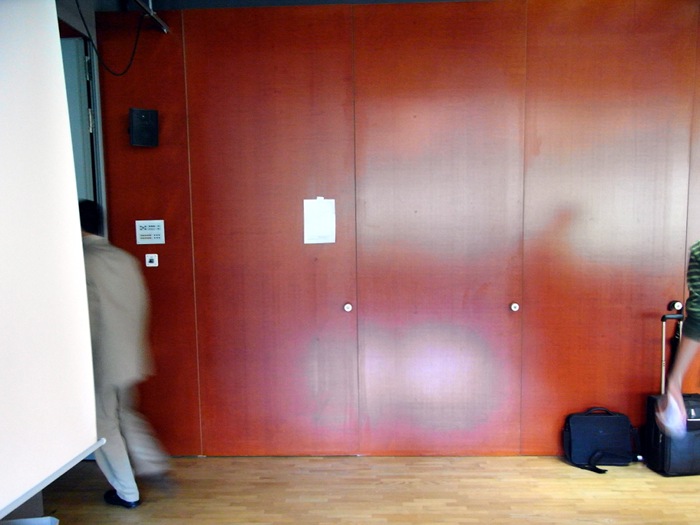 Mise en place du dessin d'Alban Larrère 'Chemins de vie" réalisé lors du 8ème Forum eCulture - ERACOM - 4 septembre 2009 - Thème : Copyright versus Community for art & creation.