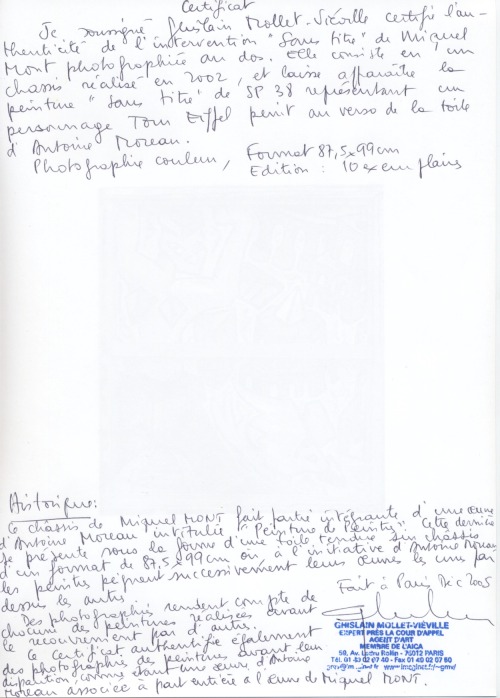 certificat d'authenticité Miquel Mont